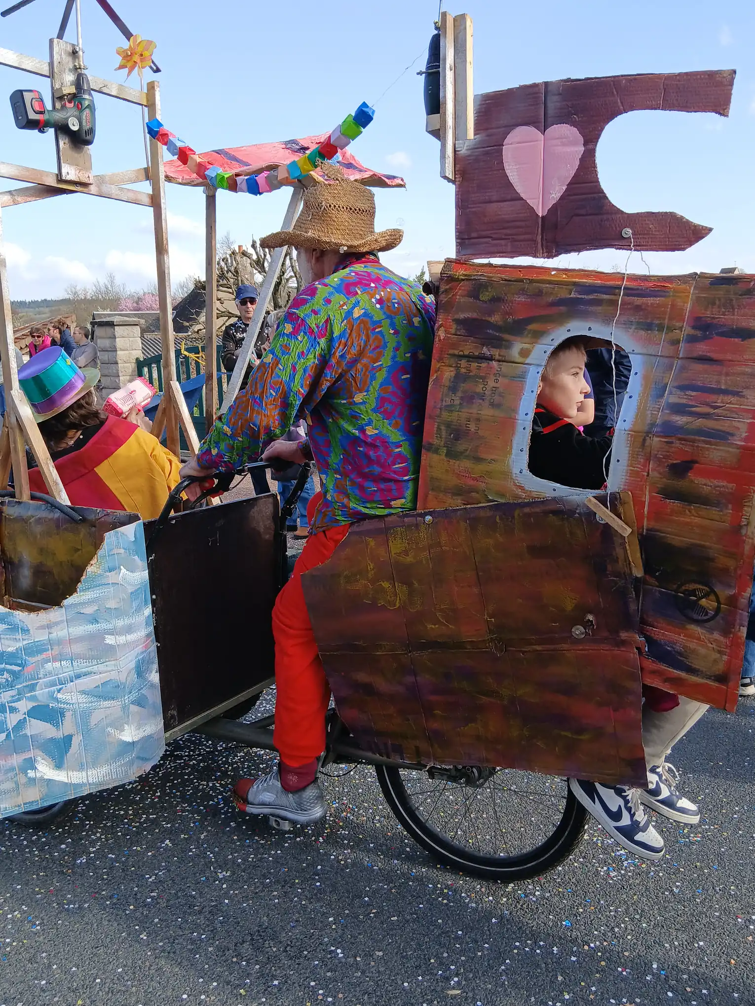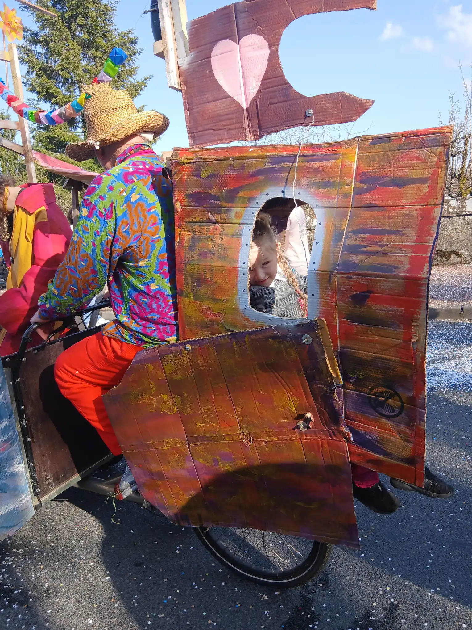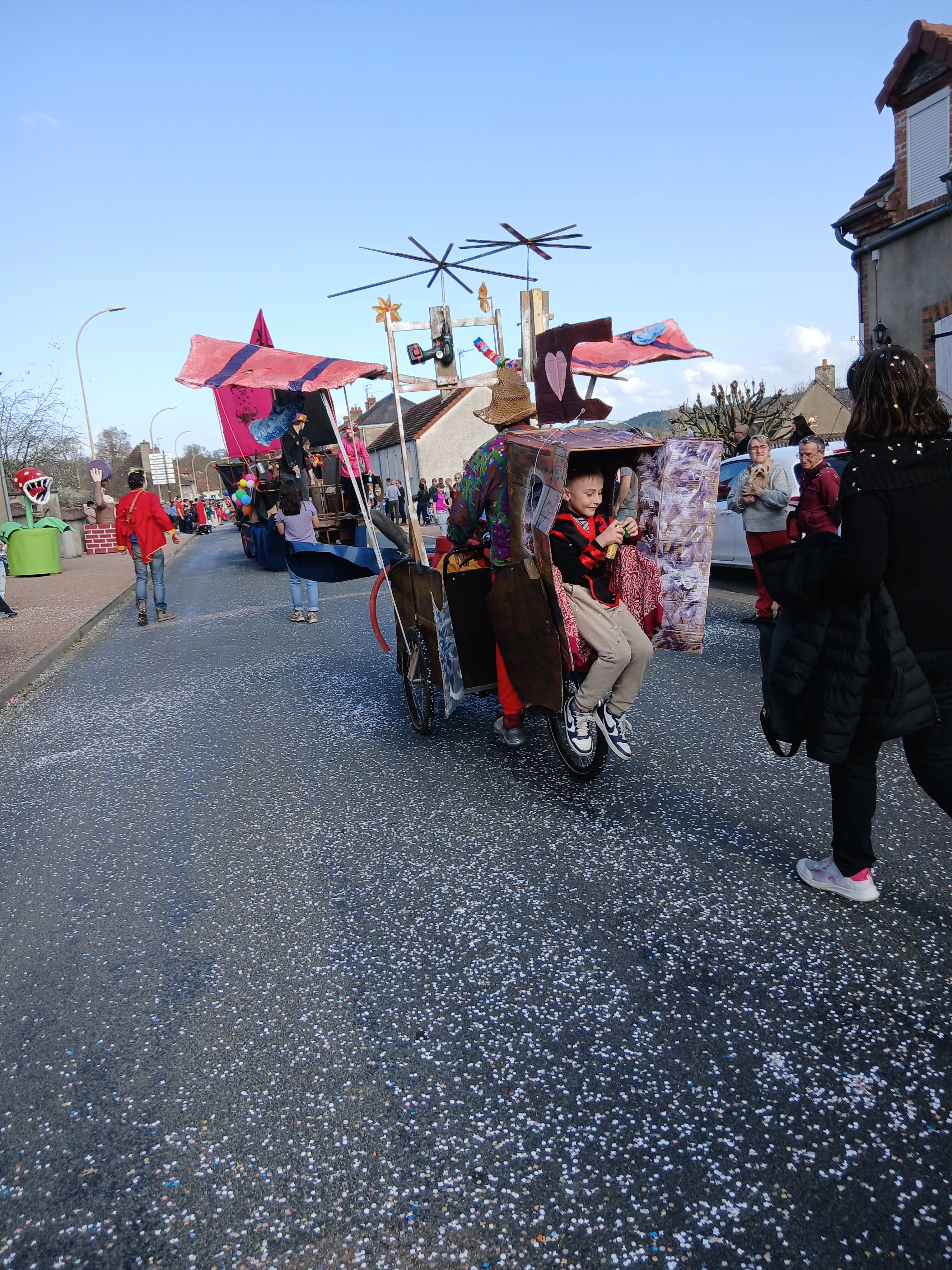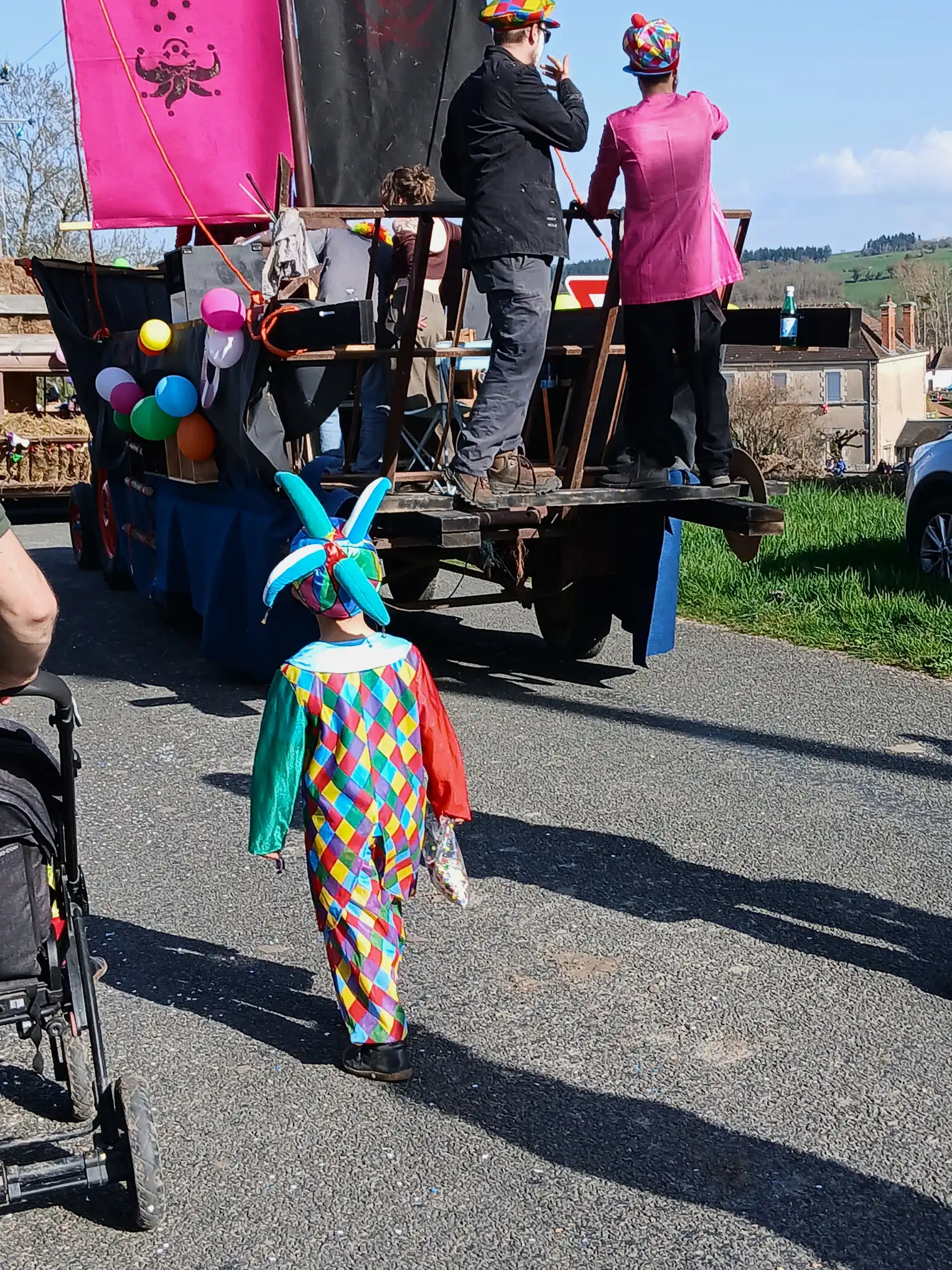 Malheureusement, suite à quelques contretemps techniques, nous avons dû nous résigner à faire le tour de Maltat, clopin-clopant, parmi les autres chars et dans la bonne humeur des enfants !